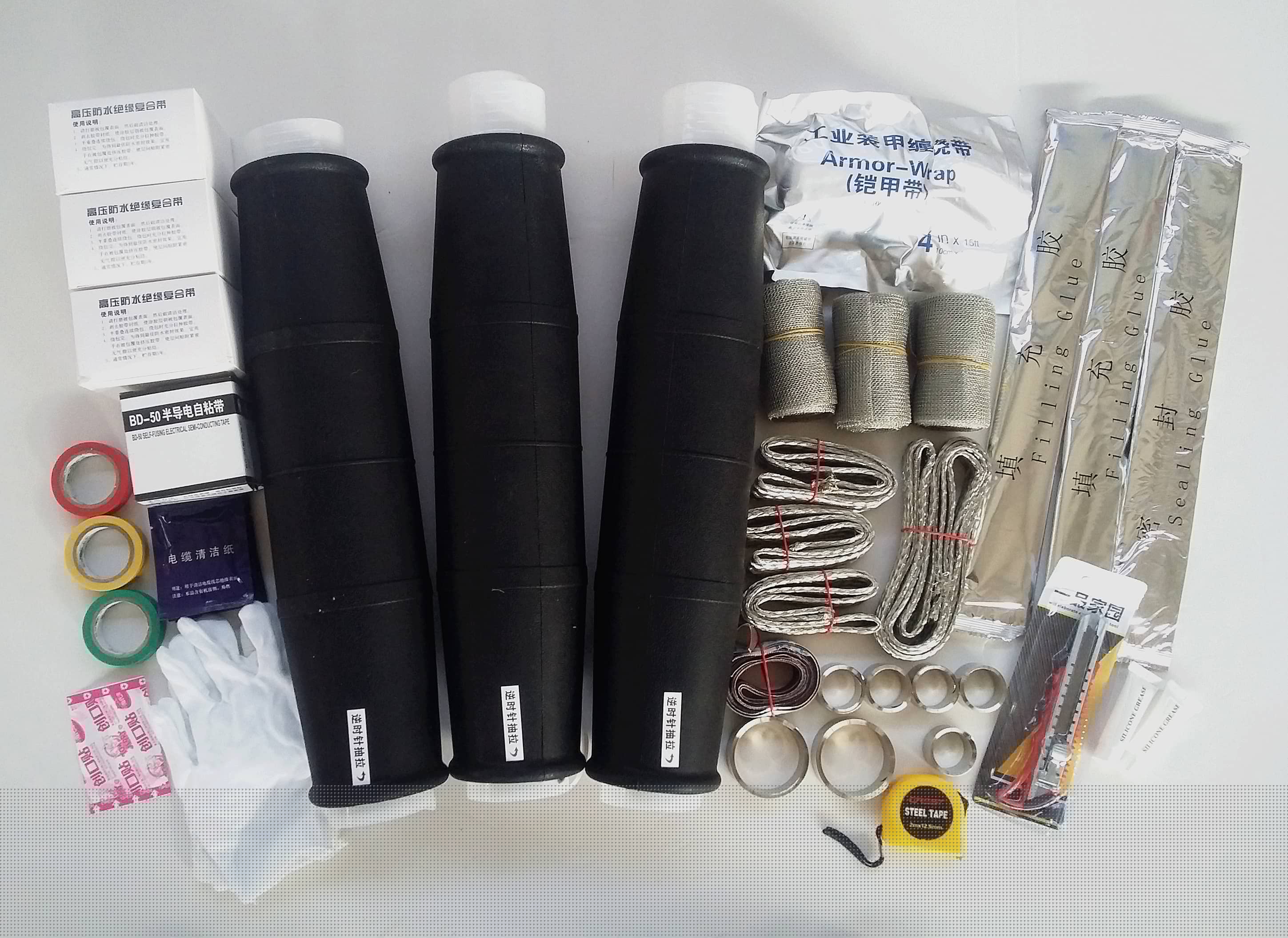 3、所有硅橡膠都為進(jìn)口, 硅橡膠具有優(yōu)良的絕緣性的高彈性,安裝后始終保持對(duì)電纜本體合適的徑向壓力,使內(nèi)界面結(jié)合緊密,不會(huì)因電纜運(yùn)行時(shí)的呼吸作用而產(chǎn)生電擊穿。應(yīng)力控制部分與主絕緣復(fù)合為一體,有效地解決了電纜外屏蔽 面處的電應(yīng)力集中問(wèn)題,確保絕緣可靠,運(yùn)行安全
