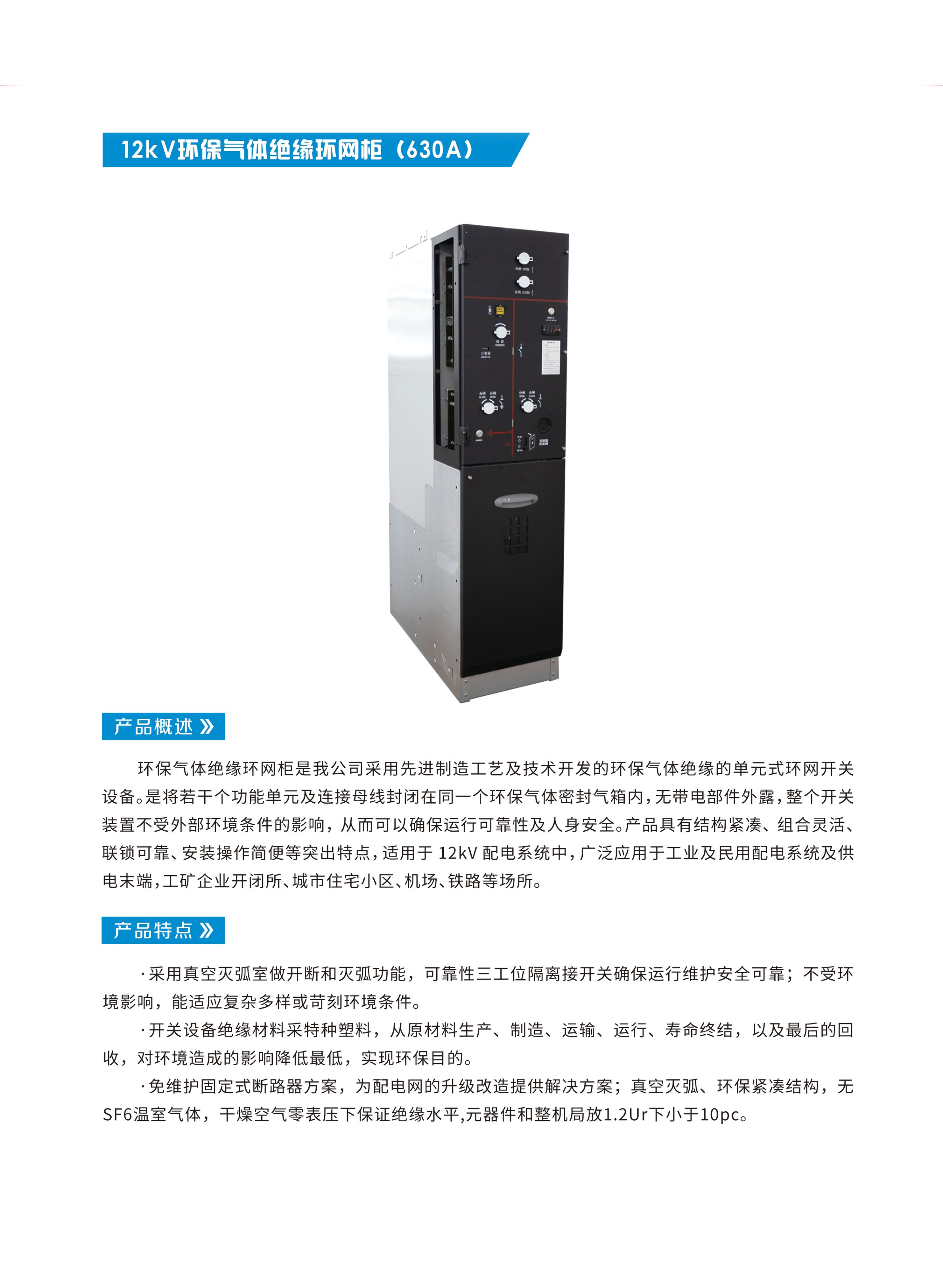 12kV環(huán)保氣體絕緣環(huán)網柜(630A)